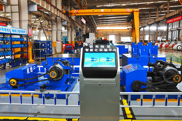 链轮轴组智能化测试平台,实现加压试车、转速温度时时监测记录,异常报警停机,确保轴组质量